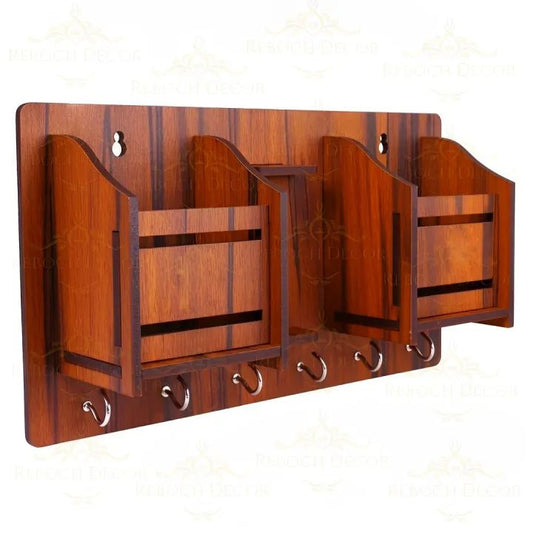 Wooden Key Holder & Charging Station – 8 Hooks, Brown